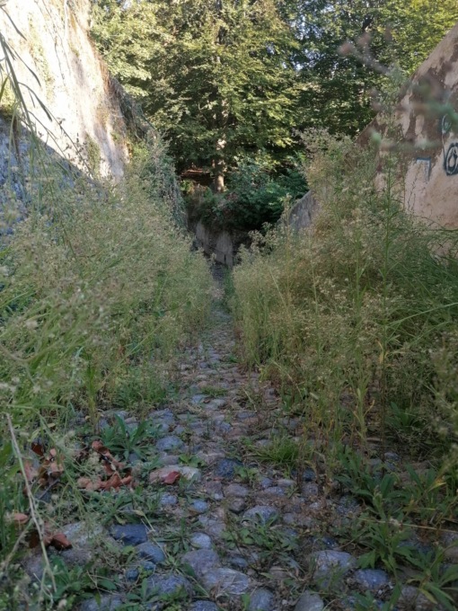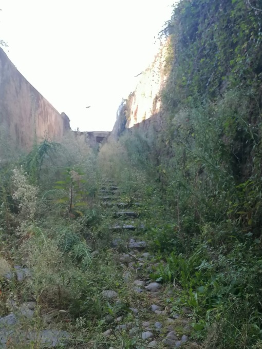 Bene, dopo aver realizzato che sotto quelle erbacce la strada ancora esisteva, ho iniziato a vedere rifiuti, vandalismo, sporcizia, e un passaggio veramente risicato tra le infestanti ormai alte, tutto condito dal timore di essere in un luogo abbandonato.
