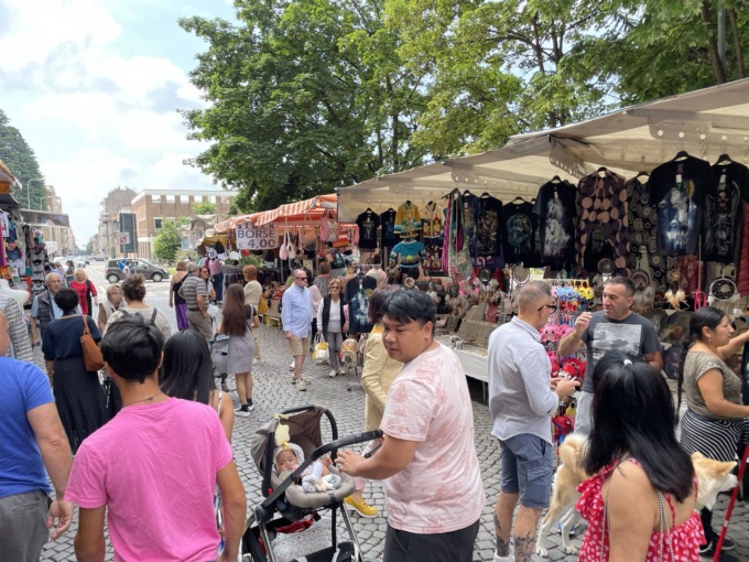 Fra le varie bancarelle si può trovare di tutto: dalle borse e i portafogli in pelle ai vestiti e accessori di bigiotteria.