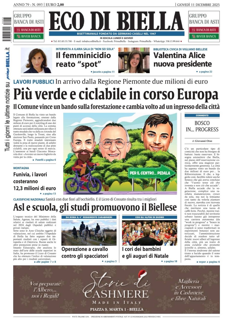 Tutte le notizie e gli approfondimenti del numero di Eco di Biella di giovedì 11 dicembre