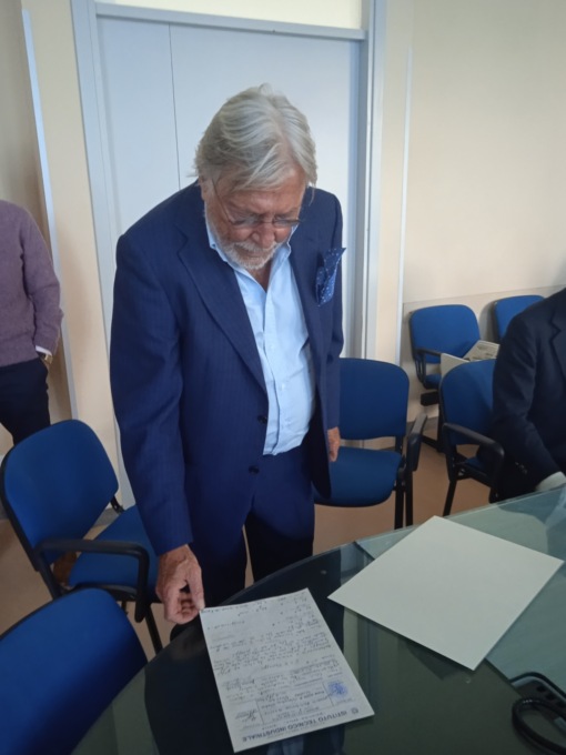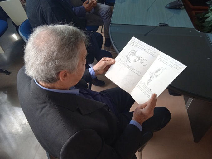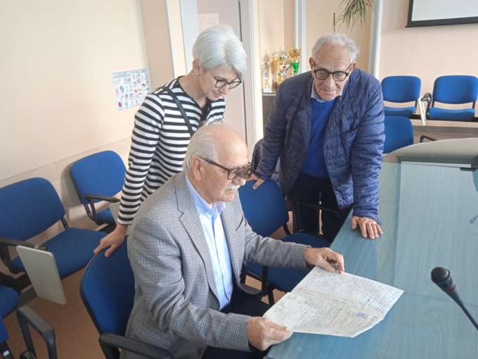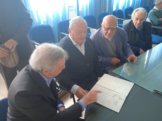 Ma non è questa l’unica sorpresa che l’istituto di via Rosselli ha riservato loro: in previsione del raduno, due docenti si sono preoccupati di recuperare in archivio registri di classe ed elaborati relativi ai loro esami di maturità, esponendoli per l’occasione. Facile immaginare l’emozione di questi ex allievi nel poter visionare documenti originali che avevano toccato l’ultima volta nel lontano 1964… A loro volta, essi hanno donato alla scuola un documento originale con i nomi degli studenti Itis membri del Consiglio Studentesco del 1963-64: una pergamena istoriata all’epoca in unico esemplare dal loro professore Secondo Cignolo.