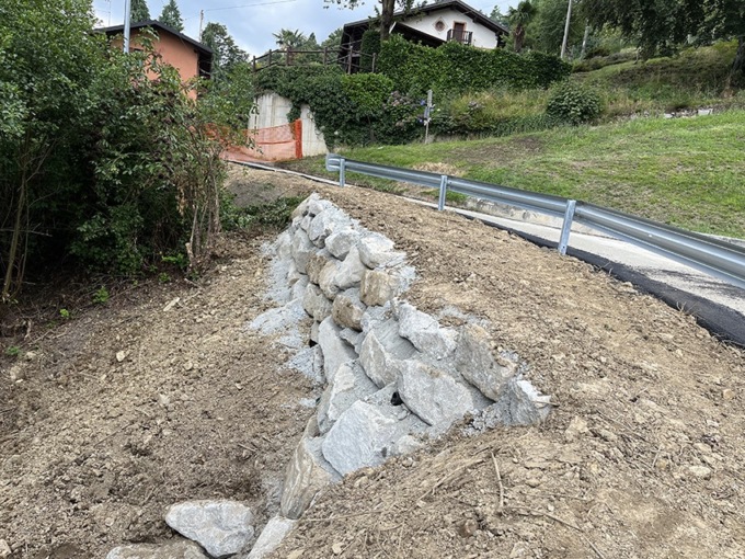 – la realizzazione di una nuova scogliera in pietra a sostegno della riva sottostante la strada;