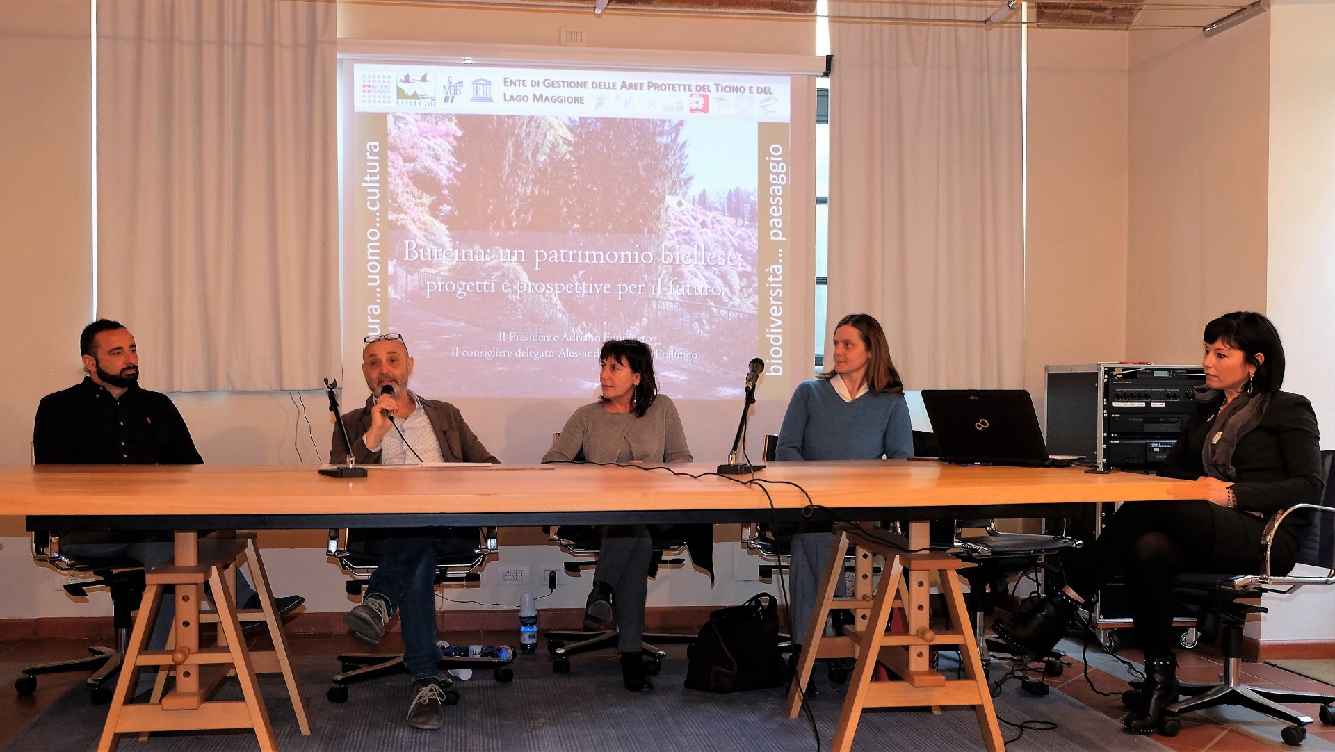 Introdotta da Federica Chilà e Andrea Quaregna – rispettivamente responsabile comunicazione e vice segretario di Fondazione CRB – la conferenza stampa ha visto gli interventi di Adriano Fontaneto – presidente dell’Ente di gestione delle Aree Protette del Ticino e del Lago Maggiore, che dal 2016 amministra il parco – e del consigliere Alessandro Ramella Pralungo, che nell’Ente ha una delega speciale alla Burcina e alla archeologia biellese e che in questi anni è stato un po’ l’anima della rinascita del parco.