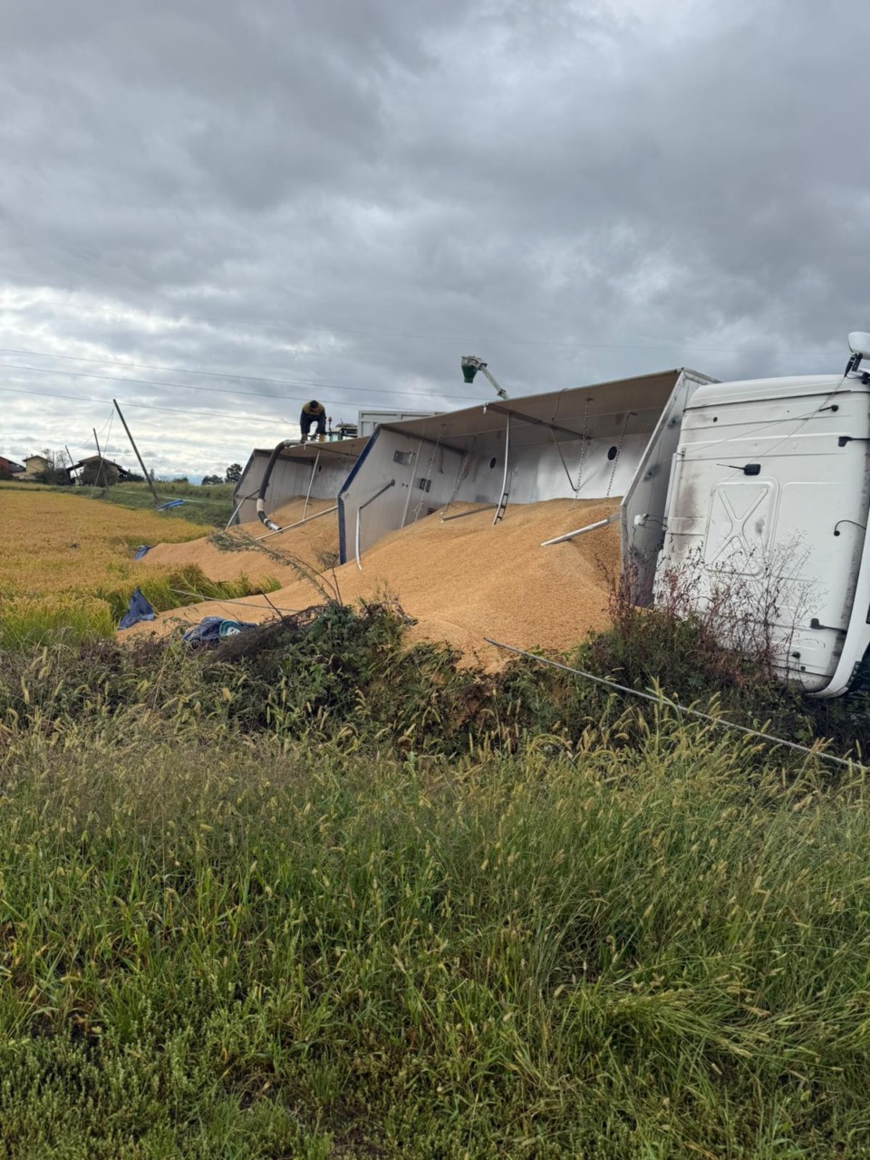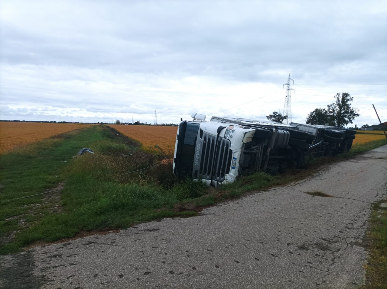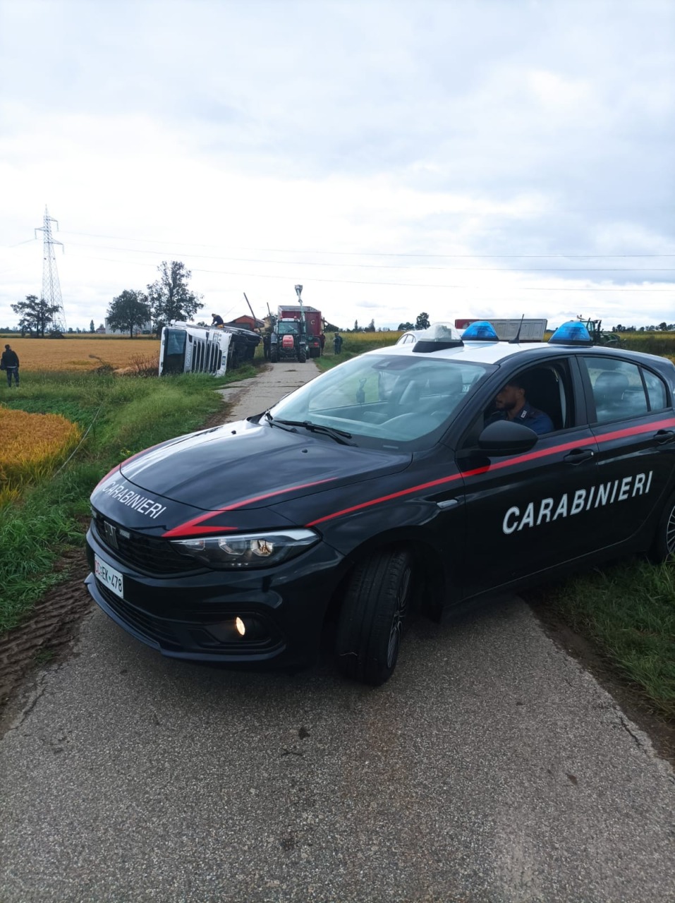 Incidente nel primo pomeriggio di oggi, intorno alle 15, nelle campagne di Villanova Biellese, dove un camion carico di riso si è ribaltato lungo una stradina poderale. Secondo una prima ricostruzione, la banchina avrebbe ceduto sotto il peso del mezzo pesante, causando il ribaltamento laterale del veicolo.