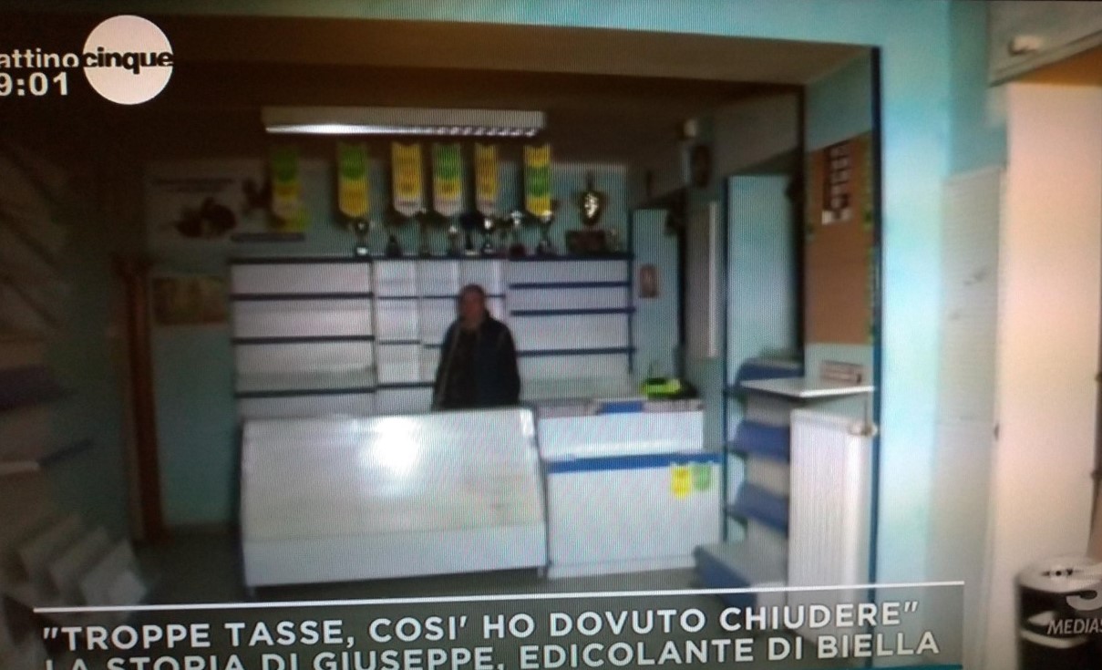 Chiude per troppe tasse, edicolante di Vigliano a Mattino Cinque.
