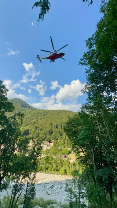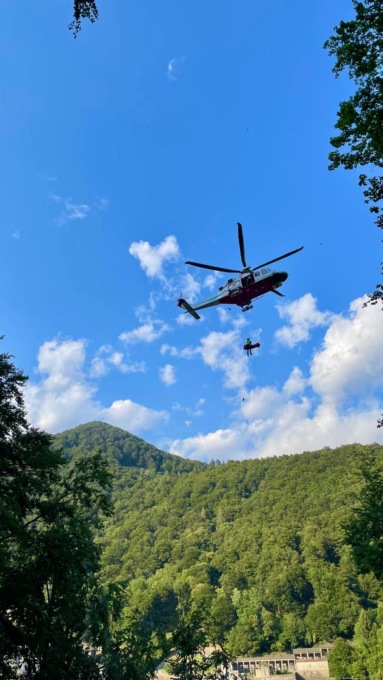 Nonostante la fitta vegetazione che rendeva complessa l’operazione, il pilota dell’elicottero è riuscito a verricellare sul posto sia il medico sia il tecnico di elisoccorso. Dopo il recupero, l’elicottero ha temporaneamente trovato appoggio nella piazzola di atterraggio di Piedicavallo, in attesa che le operazioni a terra venissero completate.