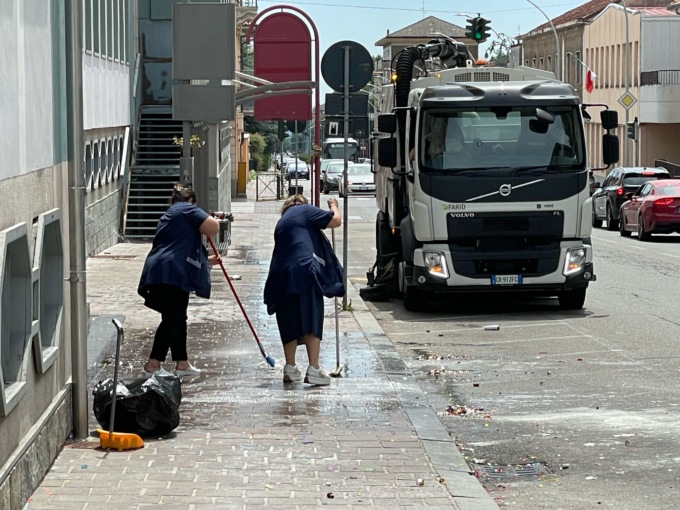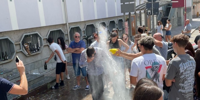 Le immagini che documentano i festeggiamenti di fronte al Liceo scientifico Amedeo Avogadro di Biella (analoghe scene si sono verificate anche alle uscite degli altri istituti biellesi) parlano chiaro: farina ovunque, bottiglie di spumante vuote lasciate a terra, coriandoli sparsi in strada, uova rotte, petardi esplosi e un odore nauseabondo di spumante fermentato che impregna l’asfalto.