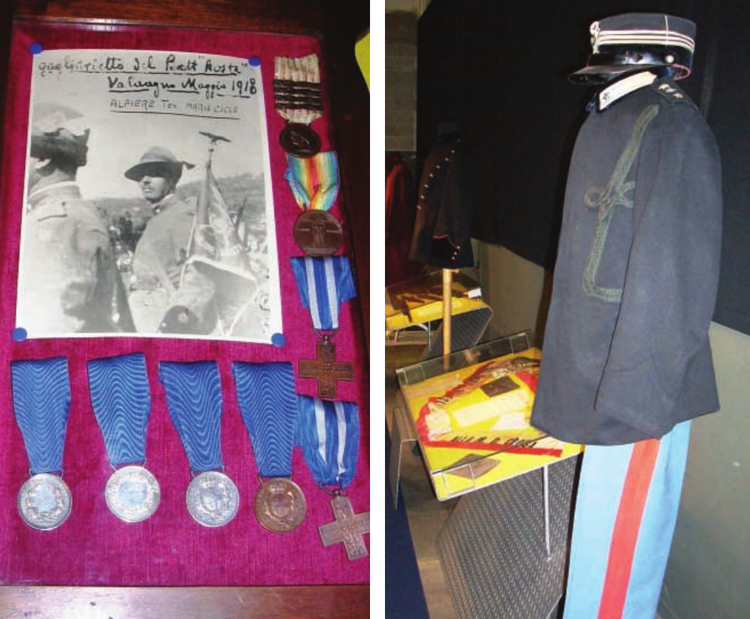 Tra i pezzi più significativi spiccano le divise storiche di figure eroiche come Costantino Crosa e Mario Cucco, i paramenti liturgici di padre Giovanni Brevi (medaglia d’oro), e i cannoni della battaglia di Adua.