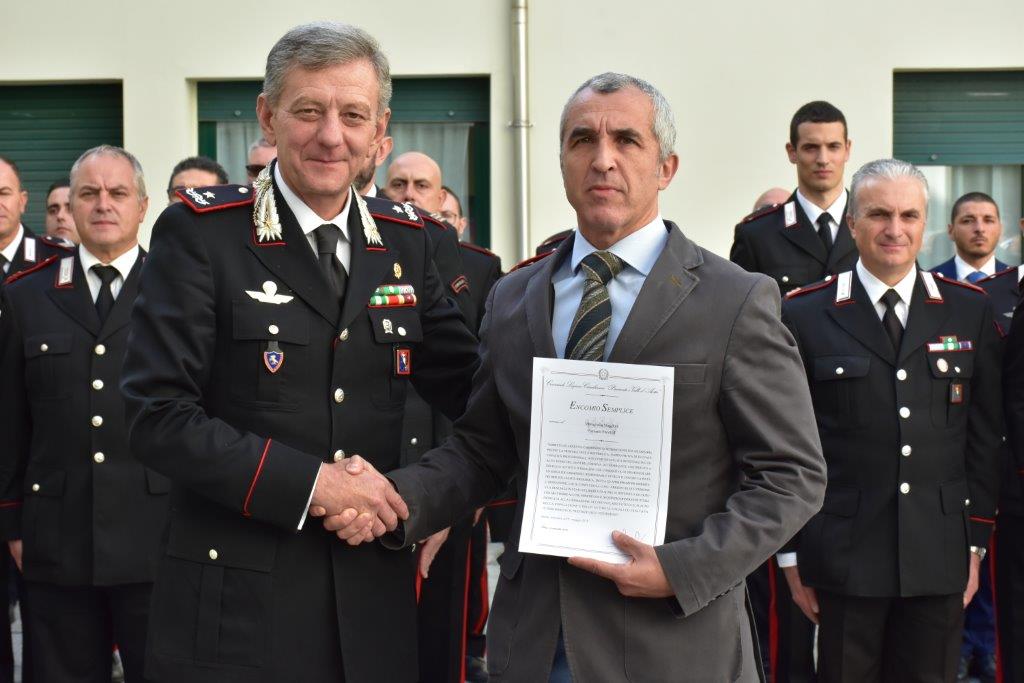 Nei giorni scorsi, il nuovo comandante regionale, Aldo Iacobelli, Generale di brigata, ha approfittato della visita al comando provinciale di via Rosselli (dove è stato accolto dal nuovo comandante, tenente colonnello Mauro Fogliani) per premiare i due sottufficiali che per giorni e giorni hanno levato spazio alla loro vita privata e alle loro famiglie sia di giorno sia di notte, per risolvere la difficile indagine e porre fine a uno dei maggiori scandali degli ultimi anni.