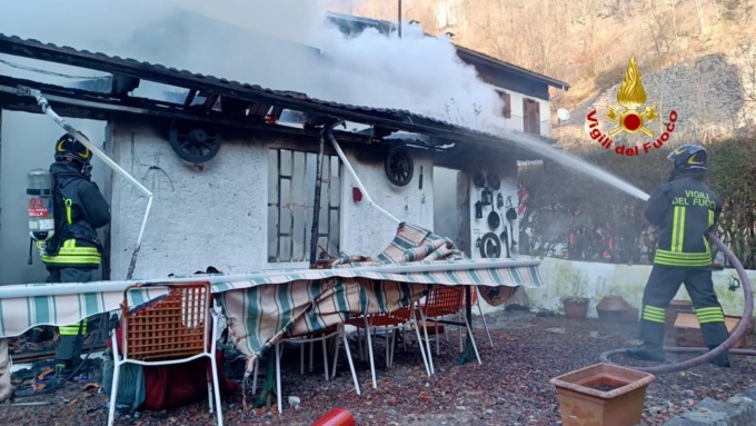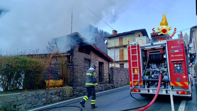Non si conosce la natura dell’incendio che nel primo pomeriggio di oggi ha devastato un rustico adibito a deposito di attrezzature in frazione Fucina di Campiglia Cervo. Indagano i carabinieri e i vigili del fuoco intervenuti poco dopo le 13 con tre squadre. Completamente distrutto il tetto del complesso, ancora in fiamme all’arrivo dei pompieri.
