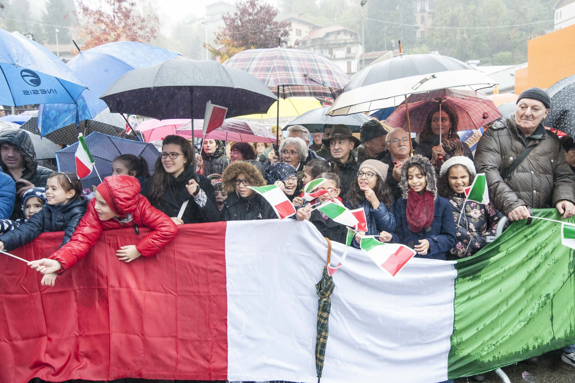 Tappa finale il ponte sul Poala, dove trovarono la morte diversi abitanti, dove la Protezione civile aveva in corso un’esercitazione per la pulizia dell’alveo e dove una gigantografia riproponeva pochi metri prima il disastro di allora. Il Presidente si è affacciato dal ponte, attento alle operazioni. Un saluto, anche qui, ai bimbi delle scuole e ai volontari e, infine, ripartenza verso la Val d’Aosta e poi versio Parigi per le cerimonioe di chiusura della Grande Guerra.