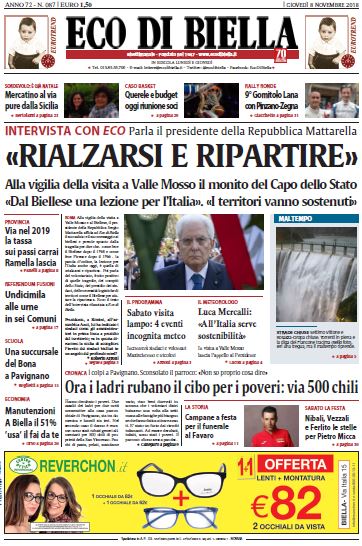 Azzoni gli ha consegnato la copia di Eco di Biella di giovedì scorso con l’intervista al Presidente che anticipava gli argomenti del suo saluto e del suo intervento e che era titolata “Rialzarsi e ripartire”, monito del Presidente che aveva ricordato la forza di volontà e di reazione del Biellese quale esempio per tutta l’Italia, anche quella di oggi. Lo scambio di opinioni fra Azzoni e il Presidente è stato sui temi della comunicazione e informazione che Mattarella ha poi trattato anche ad Aosta al decennale della Scuola delle Democrazia.