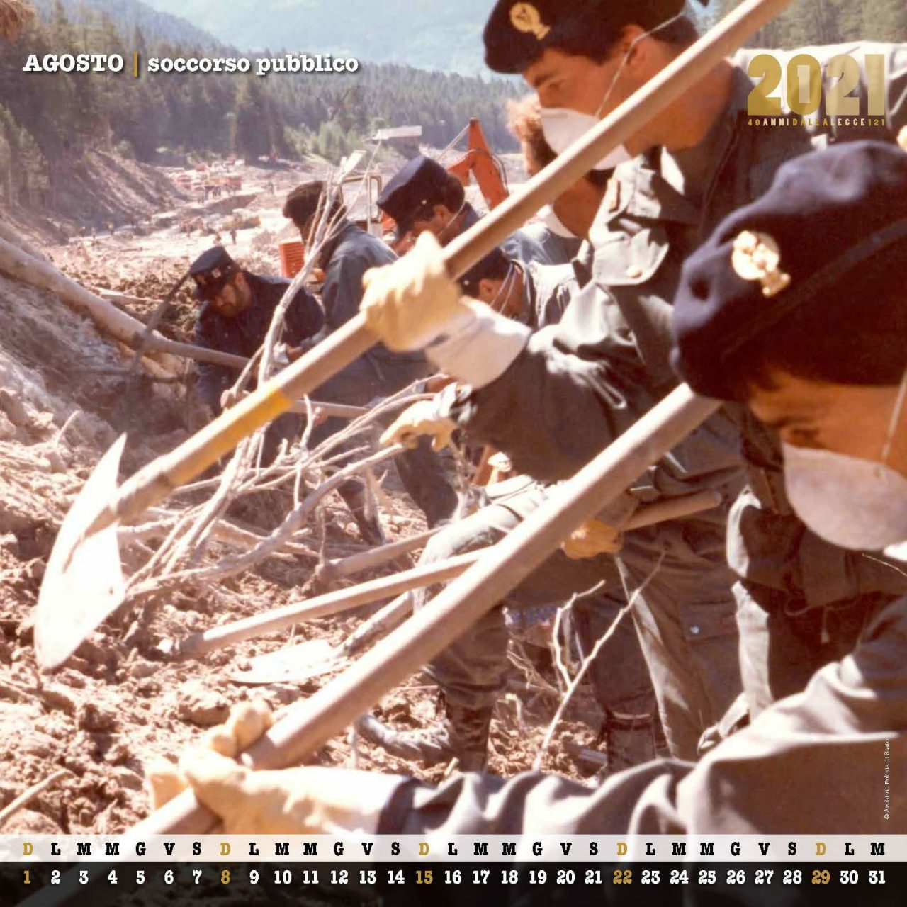 Le 12 immagini del calendario, scattate da vari fotografi e in epoche diverse, raccontano gli aspetti innovativi che la legge di riforma ha introdotto nella Polizia di Stato: in particolare, la parità di accesso e progressione di carriera per le donne e lo spirito di servizio come, per il mese di marzo, lo scatto che ritrae l’ispettore Santa Perrone e la piccola Elena Luisi salvata dai suoi rapitori o, per il mese di agosto, il reparto mobile che presta soccorso agli abitanti della Val di Fiemme, o ancora, per il mese di dicembre, i poliziotti impegnati nell’attività connessa all’emergenza Covid-19.