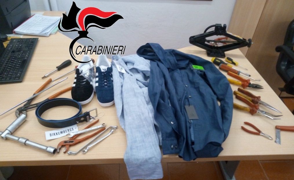 Non solo: in macchina, una vecchia Fiat Punto, i militari hanno trovato nel bagagliaio altri capi d’abbigliamento e un paio di scarpe, tutta merce che dovrebbe essere stata rubata rubata in altri negozi di cui si sta cercando di risalire alla provenienza. Curioso il fatto che le scarpe fossero di colore differente.