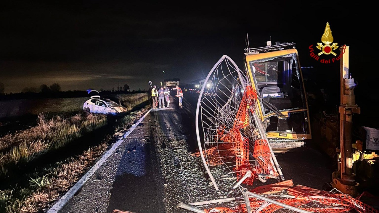 Secondo le prime informazioni, l’auto avrebbe urtato i mezzi da cantiere per ragioni ancora al vaglio delle autorità. Dopo l’impatto, il veicolo ha proseguito la sua corsa finendo in un campo adiacente alla strada provinciale. La ricostruzione esatta dell’accaduto sarà definita dagli accertamenti avviati dalla Polizia Stradale di Biella.