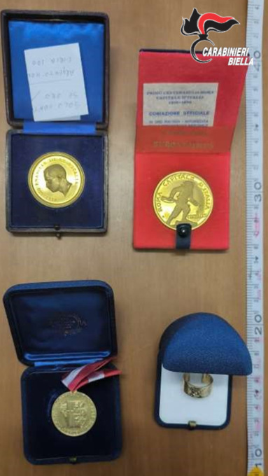 All’interno dell’auto sono stati trovati circa 1.000 euro in contanti e diversi monili in oro, tra cui alcune medaglie riconosciute con certezza dalla vittima biellese, che è stata invitata in caserma per il riconoscimento e ha potuto riabbracciare i ricordi del marito defunto, tra emozione e commozione.
