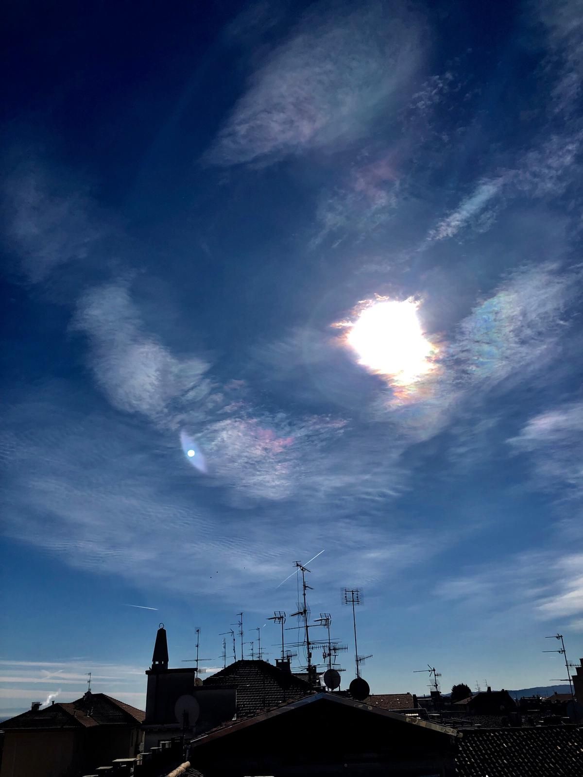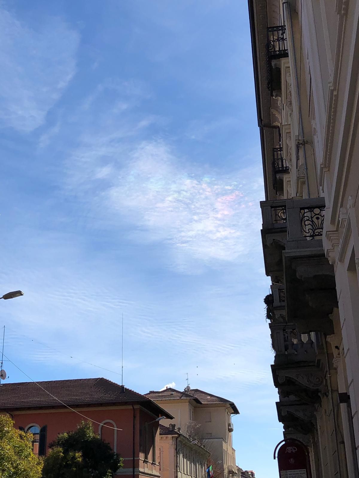 Solo uno dei nostri lettori dei quasi 12mila che l’altro giorno hanno letto la notizia sul sito di Eco di Biella e hanno ammirato lo strano fenomeno comparso nel cielo cittadino, ha saputo dare una risposta su cosa fosse lo strano effetto di luce con i riflessi dei colori dell’iride, gli stessi dell’arcobaleno, che ha sorpreso un discreto numero di biellesi col naso all’insù. Di ipotesi ne sono state fatte parecchie. Per qualcuno non si è trattato di un fenomeno naturale e ha rispolverato la vecchia teoria delle “scie chimiche” che tante polemiche ha sollevato in passato. C’è chi ha addirittura parlato di aurora boreale anche se, in realtà, non è possibile che tale fenomeno possa comparire nel cielo di Biella.