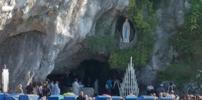 Santo Rosario dalla Grotta delle Apparizioni del Santuario di Nostra Signora di Lourdes con il vescovo di Biella, monsignor Roberto Farinella, martedì 27 agosto alle ore 18.