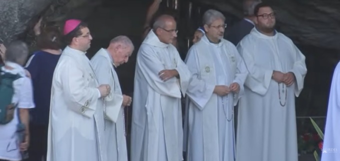 Il momento di preghiera, con benedizione finale impartita dal religioso, è stato trasmesso in diretta da TV2000 e da Tv Lourdes.