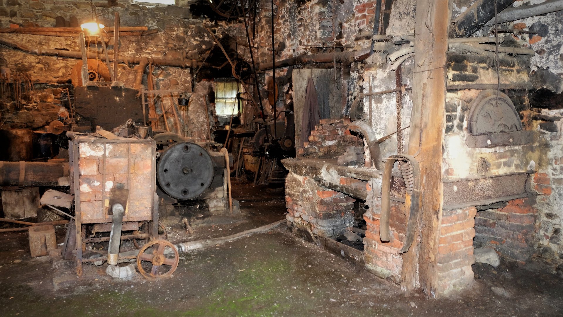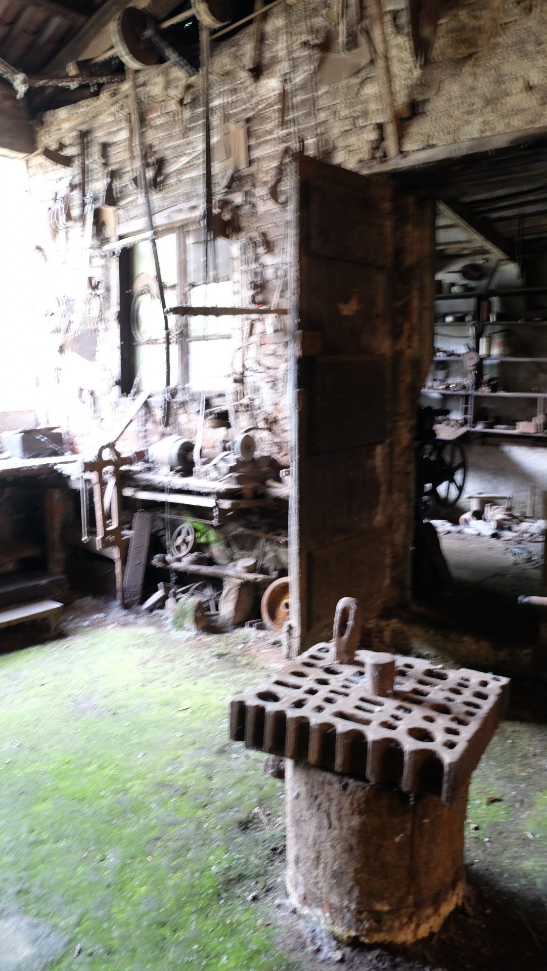 Aprendone la porta di legno, si entra in un’altra epoca: nella semioscurità, illuminata dalle vecchie lampade, appare il pavimento in terra battuta, i forni, magli di vario tipo, incudini e martelli, e poi una sala con le mole, una piccola officina con tutti gli attrezzi appesi, la ruota che, con l’acqua del rio, metteva in movimento le macchine, gli oggetti prodotti… tutto è lì come è stato lasciato, come in attesa che il fabbro torni da un momento all’altro e riprenda il lavoro interrotto: ci sono anche un paio di scarpe e abiti da lavoro, appesi accanto a un forno.