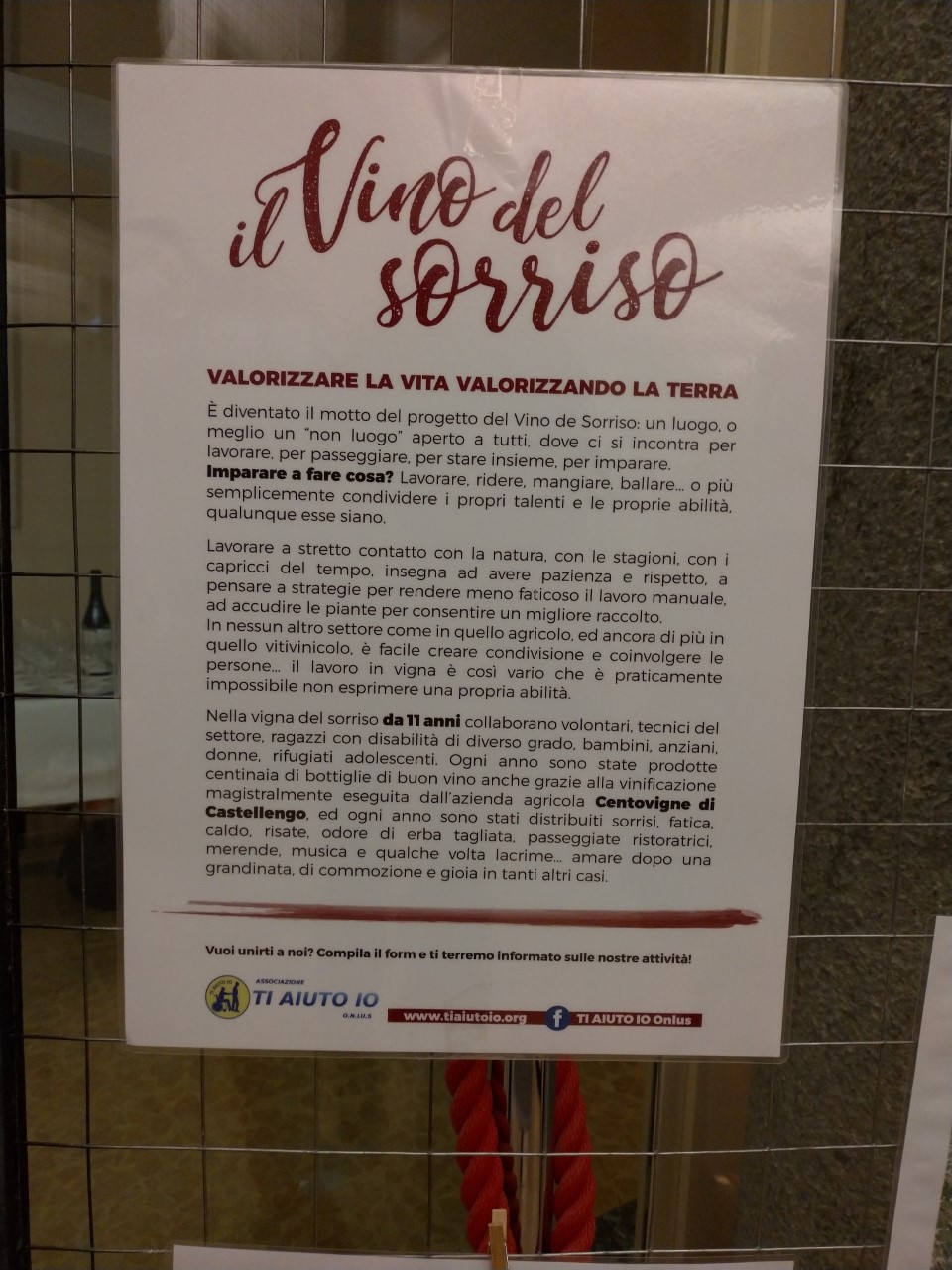 Ristrutturare un vecchio vigneto con la consulenza di tecnici, volontari e persone con disabilità per produrre il “vino del sorriso” i cui proventi vanno a finanziare progetti dell’associazione volti all’integrazione. Anche quest’anno Ti Aiuto Io di Candelo ha presentato il frutto del proprio impegno in una serata speciale, avvenuta sabato, a Palazzo Gromo Losa.