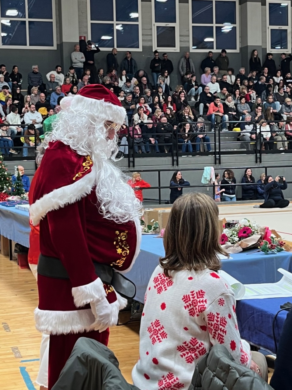 Da dove il viaggio è ripartito per l’Europa con soste in Francia, Italia e Spagna per poi ripartire, ancora una volta, per le Americhe con il Brasile, le Hawaii ed infine New York. Per poi concludere il viaggio con il ritorno al Polo nord con la sua slitta, dove un Babbo Natale stanco ma felice, può infine riposare, con il cuore pieno di gioia per aver dispensato felicità, serenità ed amicizia a tutti i bimbi/e del mondo. A seguire questo fantastico viaggio, si sono alternate in pedana, in una serie di scoppiettanti esibizioni, individuali, a coppie e di gruppo le bimbe e ragazze dei corsi baby, base, pre agonistica ed agonistica. Ne è uscita una rappresentazione estremamente coinvolgente ed emozionante che ha miscelato le classiche musiche natalizie con i brani tradizionali nazionali, attualizzati e coreografati secondo i canoni moderni della ginnastica ritmica, ed interpretate con grande phatos e maestria dalle corsiste e dalle atlete della Rhythmic School. Esperimento riuscito con grande successo, che ha divertito ed emozionato il folto pubblico presente e che, al termine della rappresentazione, ha riservato alle protagoniste una vera e propria standing ovation.