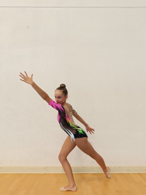 Nelva, classe 2008, gareggia portando in campo clavette e nastro. Una buona gara di inizio stagione per l’atleta che si classifica quarta in entrambe le specialità ai piedi del podio.