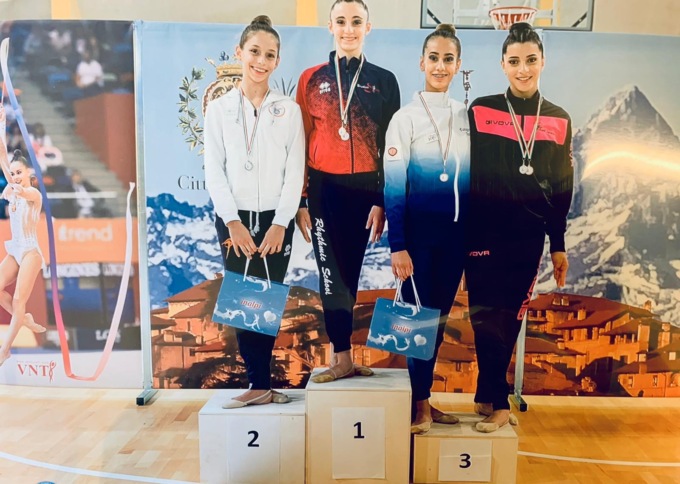 Meirone, classe 2009, è presente per aprire la sua stagione nel livello Gold, con le specialità nastro e cerchio. Con l’esercizio al cerchio rompe il ghiaccio e occupa la quinta posizione, mentre con il nastro coinvolge l’intero pubblico e si veste di un meritatissimo argento.