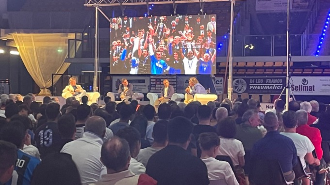 Soddisfatti gli organizzatori, l’assessore Giacomo Moscarola, affiancato dal consigliere comunale Cristina Zen, per l’incontro nell’ambito di “Campioni sotto le Stelle”, format che aveva già fatto registrare il tutto esaurito in centro e che per motivi meteorologici è stata spostato nel palasport all’interno del centro commerciale Gli Orsi.